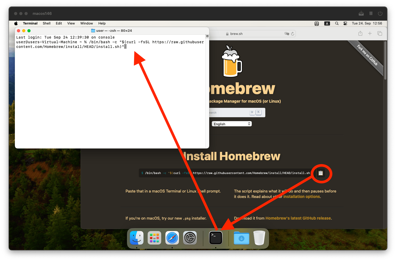 Copy whichever command they will have on the website under the “Install Homebrew” heading. This is one of the few occasions where you can trust the command you copy from a website to run in the Terminal. Running random commands from the internet is not safe. Always make sure you trust the website or person that is asking you to run any command in the Terminal.